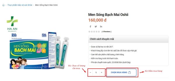 Cách 2: Đặt hàng trực tuyến qua website haanpharm.com: