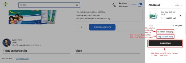 - Sau khi tìm hiểu thông tin sản phẩm trên website, khách hàng có thể liên hệ trực tiếp với nhà thuốc để được tư vấn. Gọi điện tới hotline 0971.899.466 hoặc nhắn tin qua Zalo theo số : 090.179.6388 để được hỗ trợ nhanh chóng.