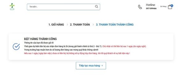 - Nhấn “Tiếp tục mua hàng” để chọn thêm sản phẩm khác.